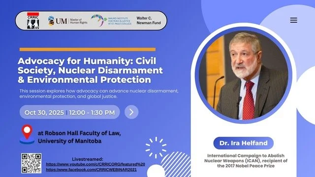 “Advocacy for Humanity” (12:00–1:30 PM, Robson Hall) features Dr. Ira Helfand, speaking on how civil society advocacy can advance nuclear disarmament, environmental protection, and global justice.